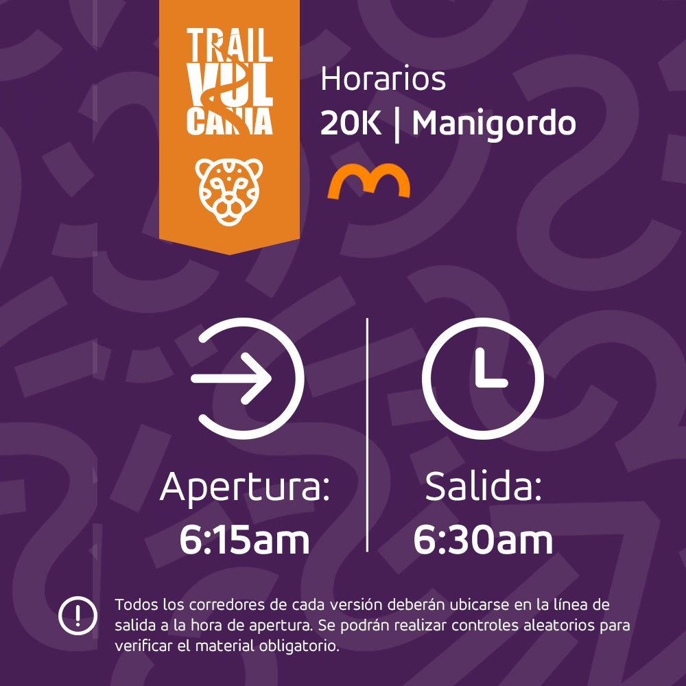 A continuación encontrarás los horarios de apertura y salida de cada una de las versiones de Trail Vulcania. Te recomendamos revisarlos con atención y planificar tu llegada con tiempo suficiente para evitar inconvenientes el día del evento. Cada distancia cuenta con un horario específico que garantiza una correcta organización, seguridad para todos los participantes y una experiencia fluida desde el inicio de la jornada.